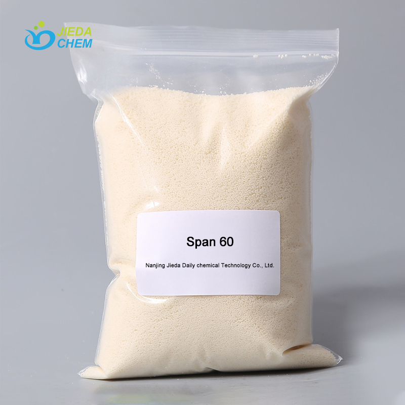 Span 60 is a white to pale yellow powder or waxy solid at room temperature, possessing good water-dispersibility (Note: The Span series are nonionic surfactants, typically described as “dispersible in water” or “forming emulsions in water,” rather than being fully “water-soluble”). It has a wide range of applications. Not only is it widely used as a key emulsifier and stabilizer in cosmetics, but it is also commonly found in numerous fields such as the food industry, coatings, textile processing, and plastics: